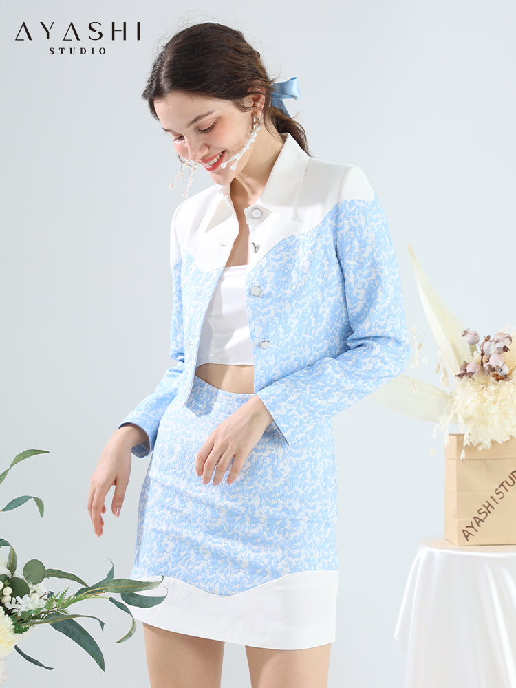 The splicing of the two fabrics is a very textured design collision, and the custom-made cloth buttons are embellished on the suit to add a more delicate touch. The refreshing color matching and short skirt immediately transform into a refined and elegant urban beauty.
